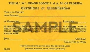 The Committee on Work shall issue Proficiency Cards to those Brothers who have demonstrated their proficiency with the adopted Forms and Ceremonies of Florida Ritual Work as detailed in The Digest Of Masonic Law of Florida F. & A.M. Chapter 37.16